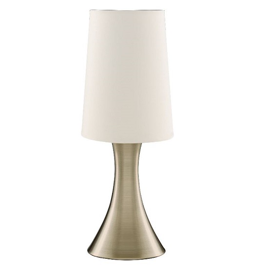 This Antique Brass Touch Table Lamp complete with white drum shade is perfect for lighting your bedroom, living room or dining room. The lamp is short and stylish with a sleek, traditional antique brass finish circular base and white fabric drum shade. Its also touch sensitive, with low, medium and high light settings, to create the perfect ambience in any corner of your home. Key Features Class (1, 2 or 3):- 2 (Double Insulated) Lampholder:- E14 Lamp Type:- Candle – Halogen Lamp Type:- 2 Wattage:- 40 Switch/Dimmer:- touch Operating Voltage:- 230V 50hz Lamp Included:- No Shade Shade Type:- Fabric/plastic Lining Shade Finish:- White/white Lining Shade Size:- H: slope: 150mm W: 105×125(mm) Dimension Total Height:- 295(mm) Width/Diameter:- 125(mm)